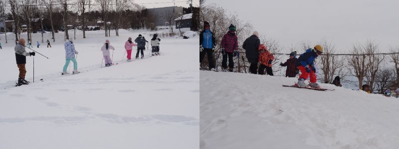 1月を迎え、例年よりも雪の量は少ないですが、1月から2月にかけてスキー学習が始まりました。学校では、グラウンドをスキーで歩きながら、雪山からスイーッと滑る子どもたちの姿が見られています。
