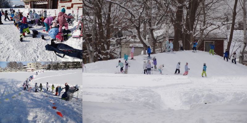 低学年も学校の雪山でがんばっています! 1・2年生のスキー学習は学校の雪山で行っています。自分たちでスキーの身支度を整え、雪山へ向かい、みんなと一緒に奮闘中です。スキー学習を楽しみにしている子どもたちは、転んでもしっかり立ち上がって頑張っています。