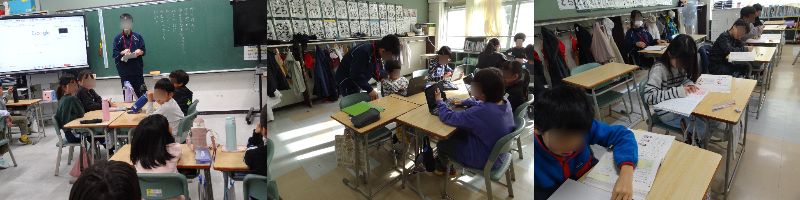 22日、23日と大麻中学校2年生3名(本校卒業生)が、職場体験学習を行いました。3名の中学生は、元担任のクラスに入り、先生の仕事を見るだけにとどまらず、児童の学習サポートの体験や、実際に教職員と接することで、働くことの意義や目的など学ぶことができました。本校職員も成長した生徒の姿を見ることができ、うれしい気持ちでいっぱいです。