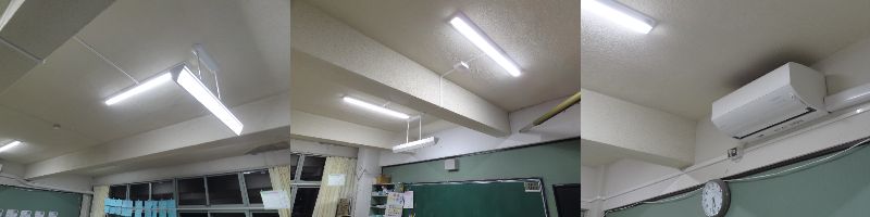 本日27日、各教室のLED照明とエアコンの設置がされました。以前に比べ、校内がとても明るくなっています。エアコンの使用は次年度の夏となりますが、まだ工事が始まっていない学校もある中、大変にありがたいことです。※最終的な点検も含めた全ての工事完了は、もう少しとなります。