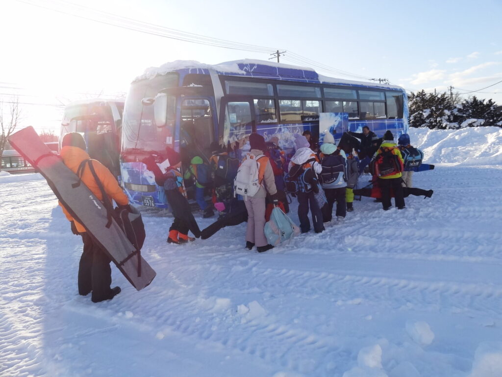 1月23日、3・4年生がグリーンランドホワイトパークでのスキー学習に出発しました。 今朝はキリリと冷え込み、「しばれる」寒さとなりましたが、空は見事な晴天。絶好のスキー日和となりました。 3年生にとっては、今回が初めてのスキー場での学習です。寒さに負けず、練習に励んでほしいと思います。がんばれ、3・4年生!