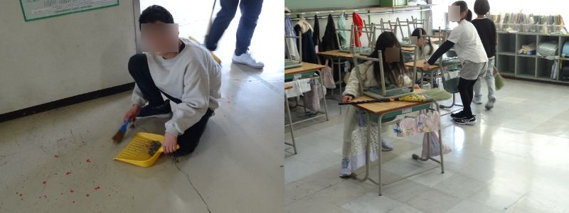 お昼休み前、本校にはいつも心温まる光景が広がります。自分たちが過ごす教室や廊下を、自分たちの手で丁寧に磨き上げる掃除の時間。一生懸命に掃除に取り組む子どもたちの背中には、学校を慈しむ「ぬくもり」が宿っています。一拭きごとに愛着を深め、自分たちの居場所を自分たちで整える。そんな「心」を育む場所でありたいと願っています。