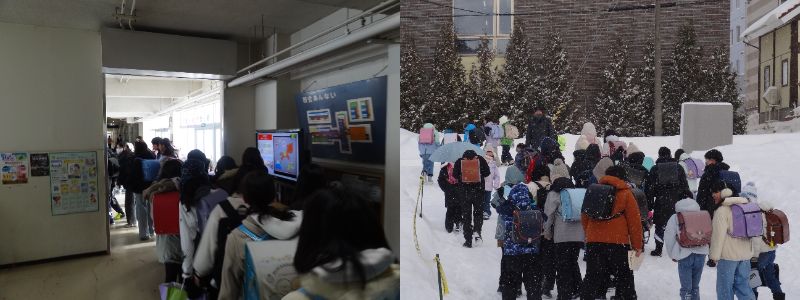 冬の一斉下校訓練を行いました。吹雪になると、前が見えにくくなったり、車の音が聞こえにくくなったりします。今回は、できる限りみんなで固まって帰ることで、お互いの姿が見えるように、そして、助け合えるように練習をしました。『ふざけない』『ポケットに手を入れない』『車に十分気をつけること』。 この3つを約束して安全に気をつけて、下校を行うことができました。