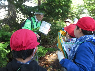 3年生が総合的な学習の時間で秋の森林体験に出かけました。森林ガイドの方々と一緒に野幌原始林を散策し、虫や花、葉などを観察してきました。