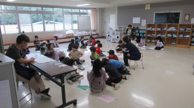 当日は秋晴れの良い天気に恵まれ、子どもたちは色とりどりの帽子をかぶり、元気に森の中を歩きました。森林ガイドの方々からは、森に生息する生き物や植物について詳しい説明をしていただきました。子どもたちは熱心にガイドさんのお話に耳を傾けていました。