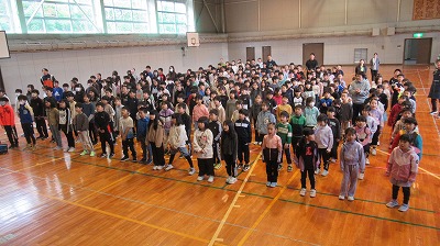前期終業式では、体育館に全校児童生徒が集まり、前期の締めくくりの式を行いました。児童生徒たちは整然と並び、校長先生のお話に真剣に耳を傾けていました。