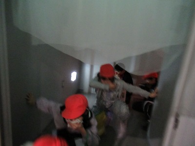 - 煙避難体験: 火災時の避難方法を実践的に学習しました。煙の中を姿勢を低くして、壁に沿って避難し、扉を必ず閉めるという正しい避難行動を体験。体験後は「身を低くして避難できたか」「壁に沿って行動できたか」「扉は閉めたか」などの項目で評価され、自分の行動を振り返ることができました