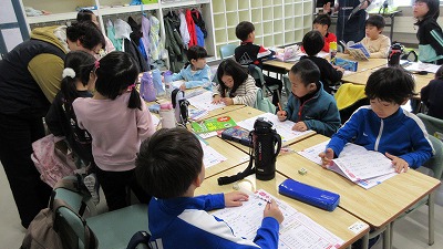 9時から10時までの1時間、児童たちは冬休みの課題や自分で用意した学習道具を手に、集中して机に向かいました 。