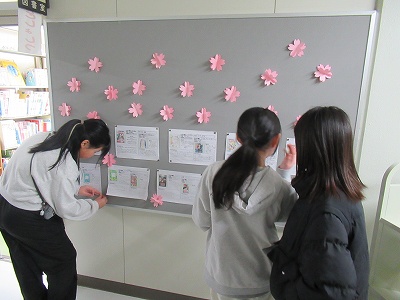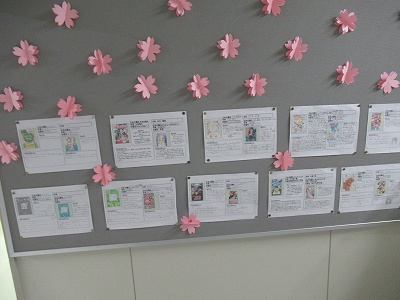 紹介シートにまとめた一押しの本を、図書室前の掲示板に貼りだしました。