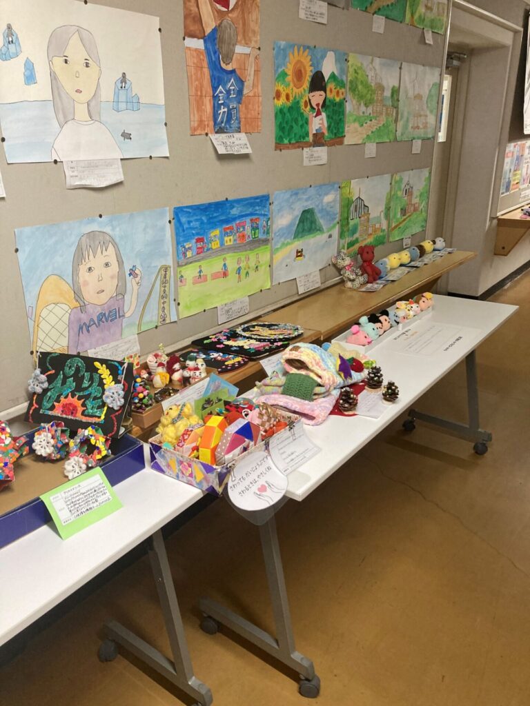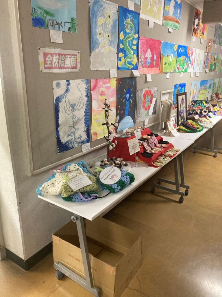 その期間に合わせて、市内の各12の事業所(デイサービス)の方が制作した作品が一堂に会した形で、「シルバー作品展」を開催します。下の写真にもあるように、繊細できめ細やかな「思い」と「技術」が結集した作品ばかりが展示されています。来校の際には、ぜひご覧ください。