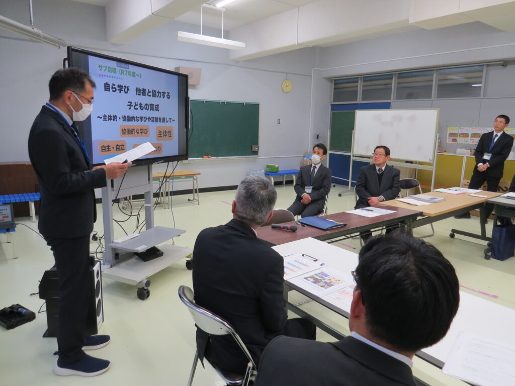 中央小の授業参観ののち、3校合同の全体会では、小中一貫教育について説明と協議を行いました。