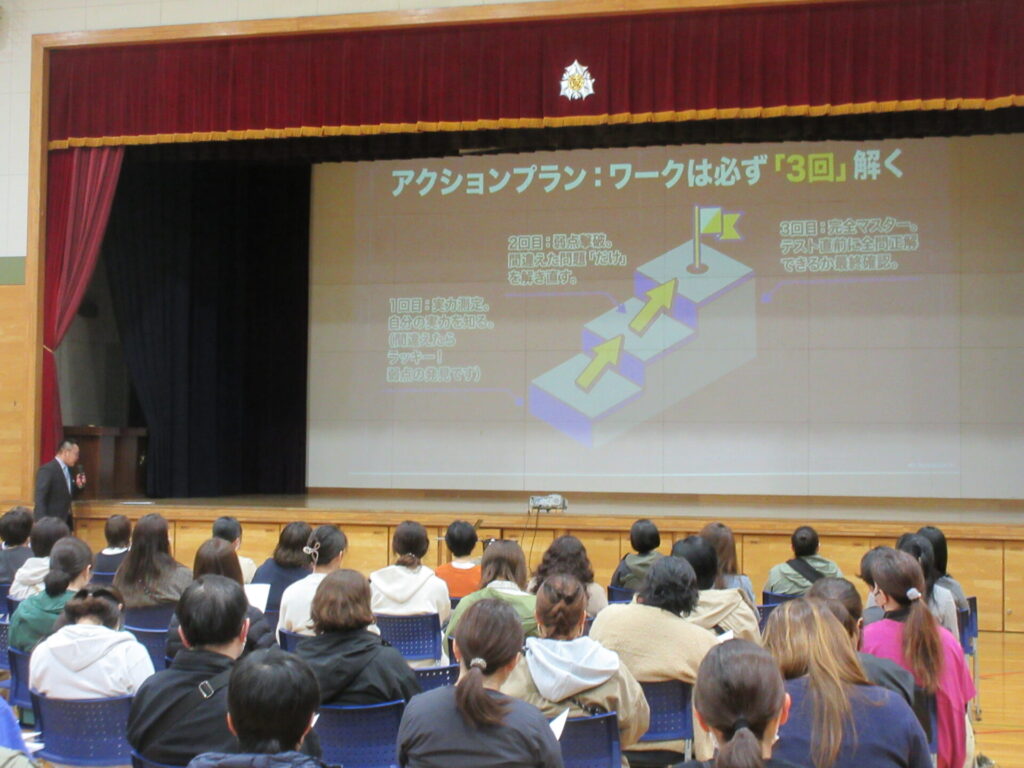 学校長から全校生徒に「学ぶことに向き合う」大切さについて、4つの問いとともに投げかけがありました。未来を見据えて、「自律する」ためのあるべき姿をさらに具体的に考えてほしいと思います。