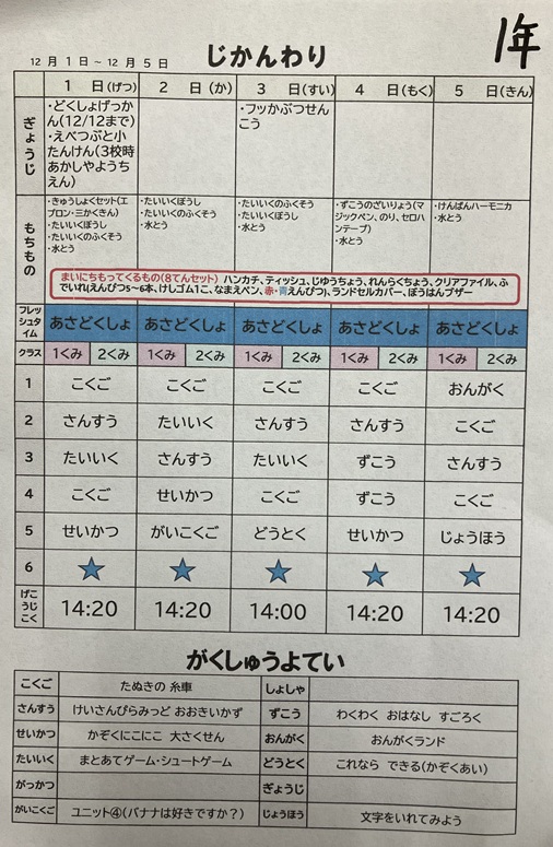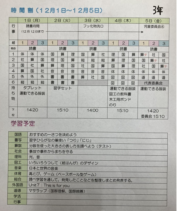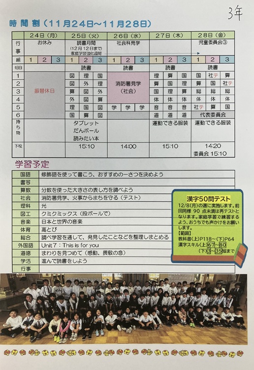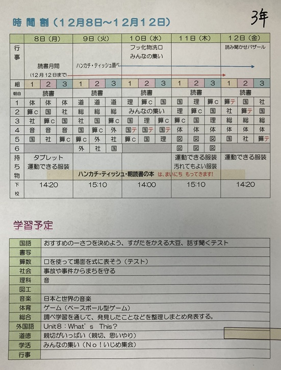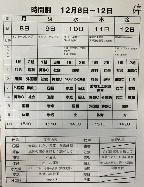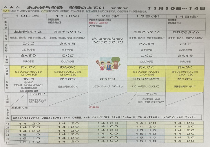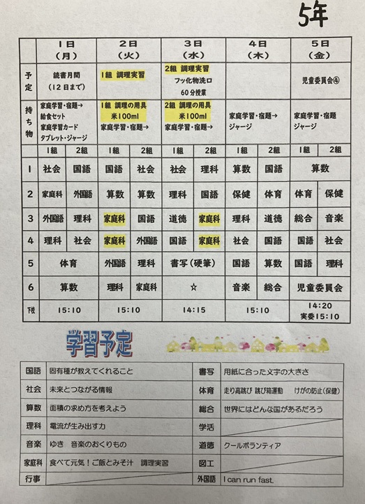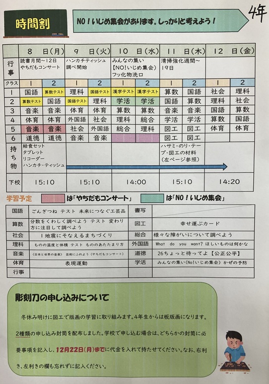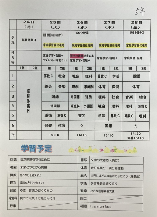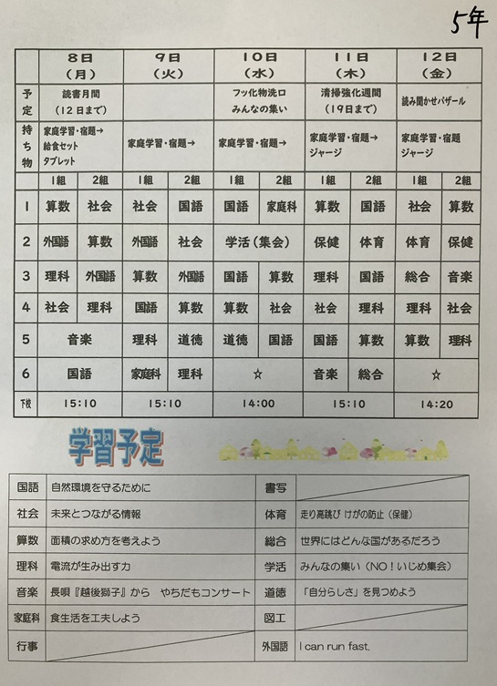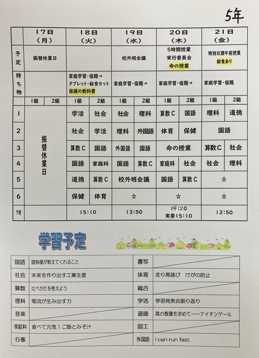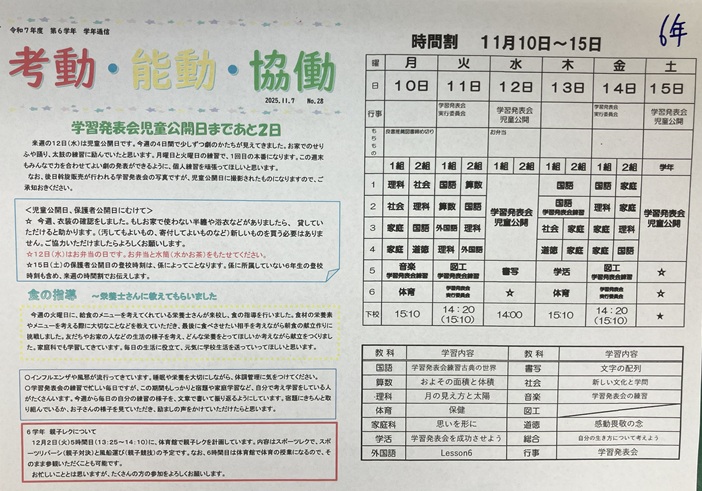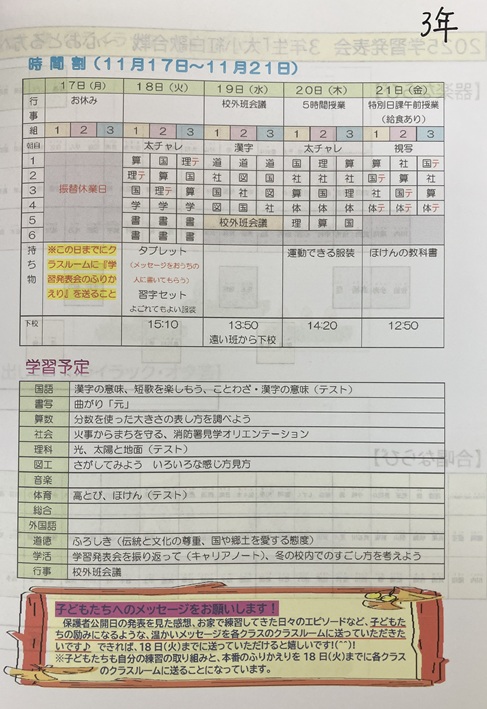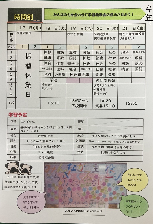 今週は学習発表会に関わる連絡が載っているため、記事面もHPに載せています。