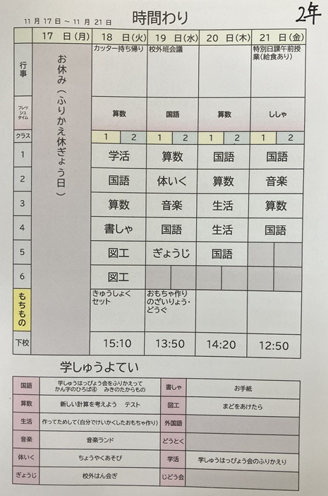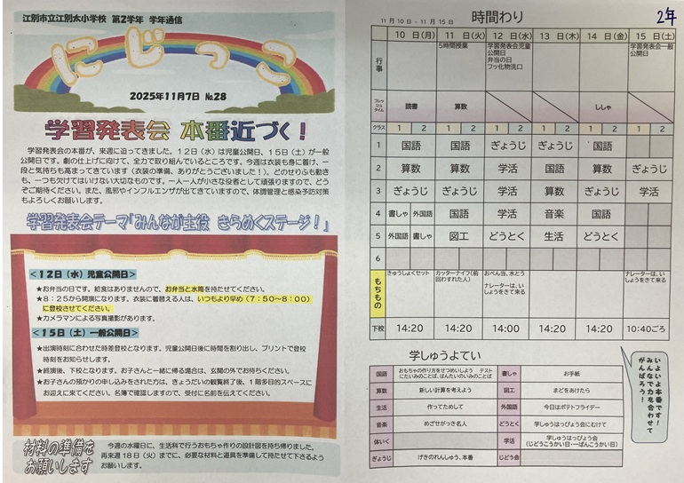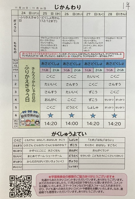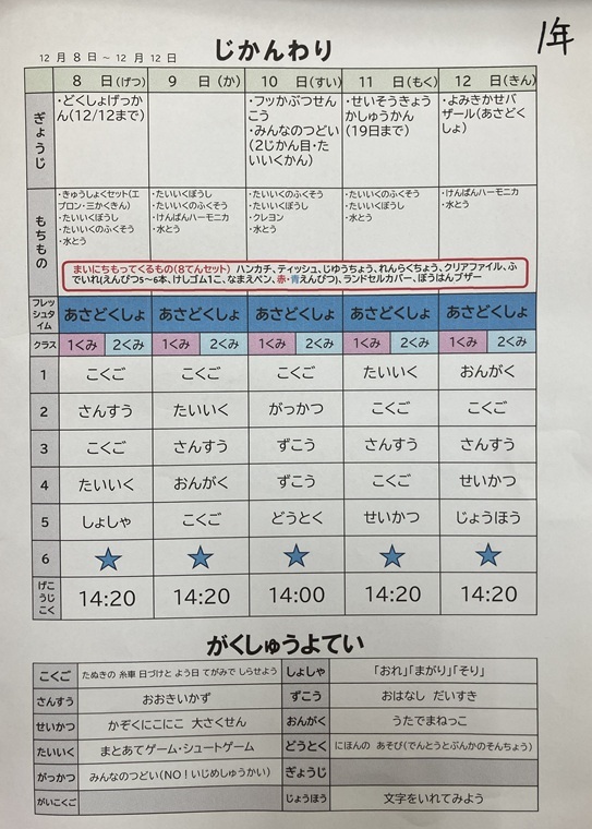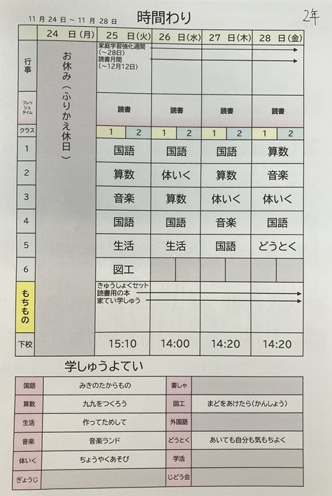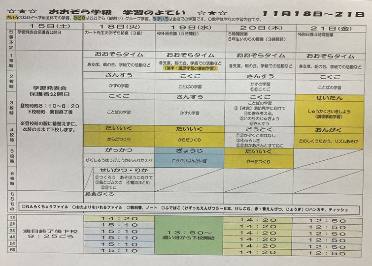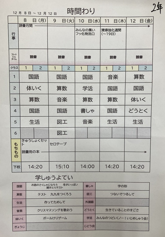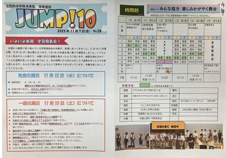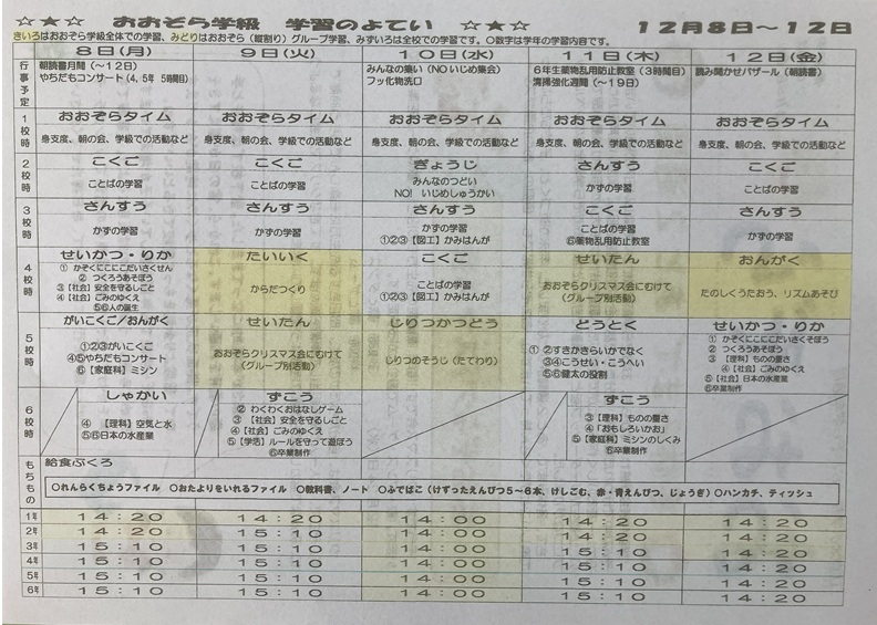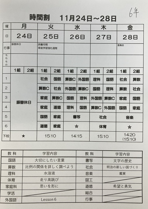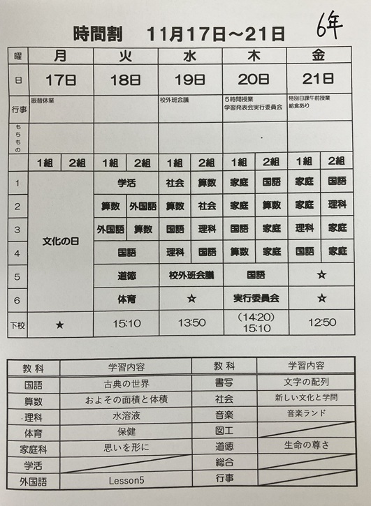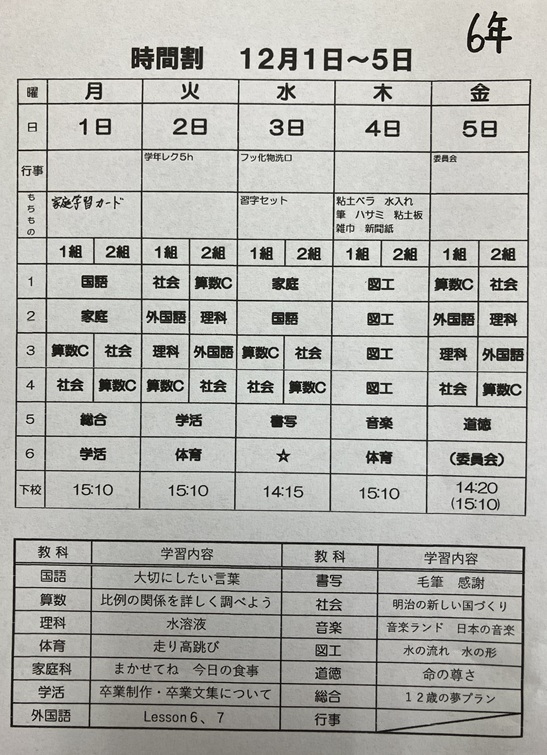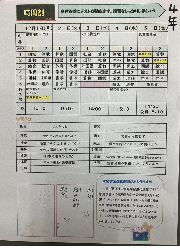 今週は学習発表会に関わる連絡が載っているため、記事面もHPに載せています。