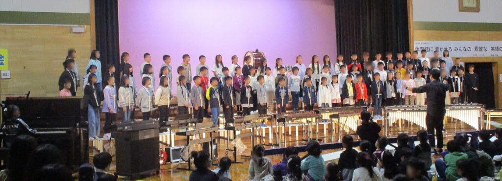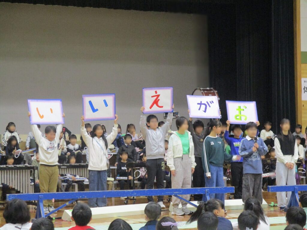 学習発表会のテーマは「体育館に響かせろ みんなの素敵な笑顔の音」です!テーマの達成を目指して、がんばってほしいですね!
