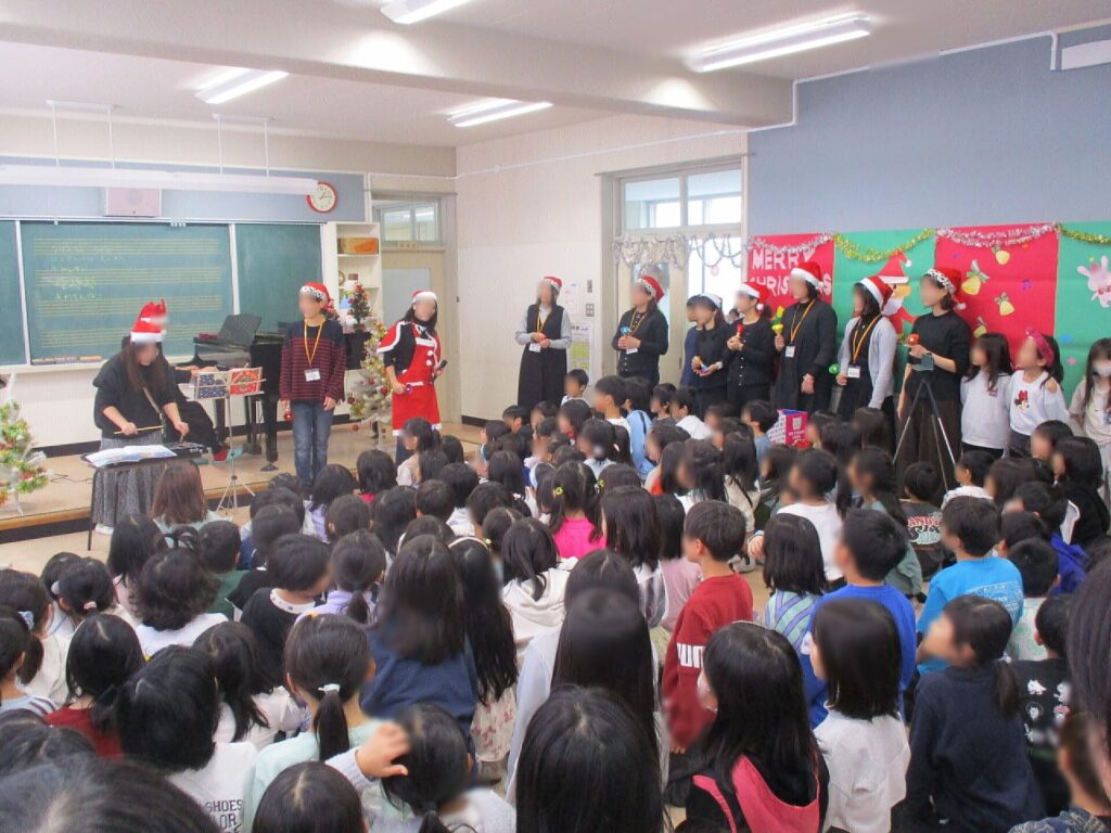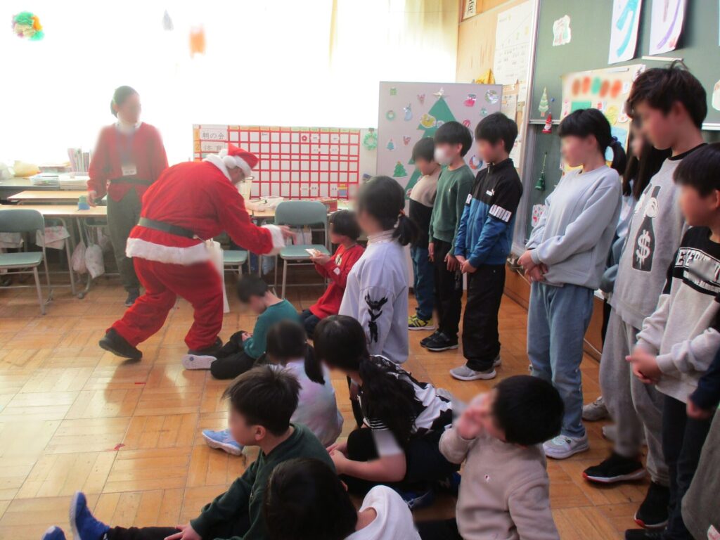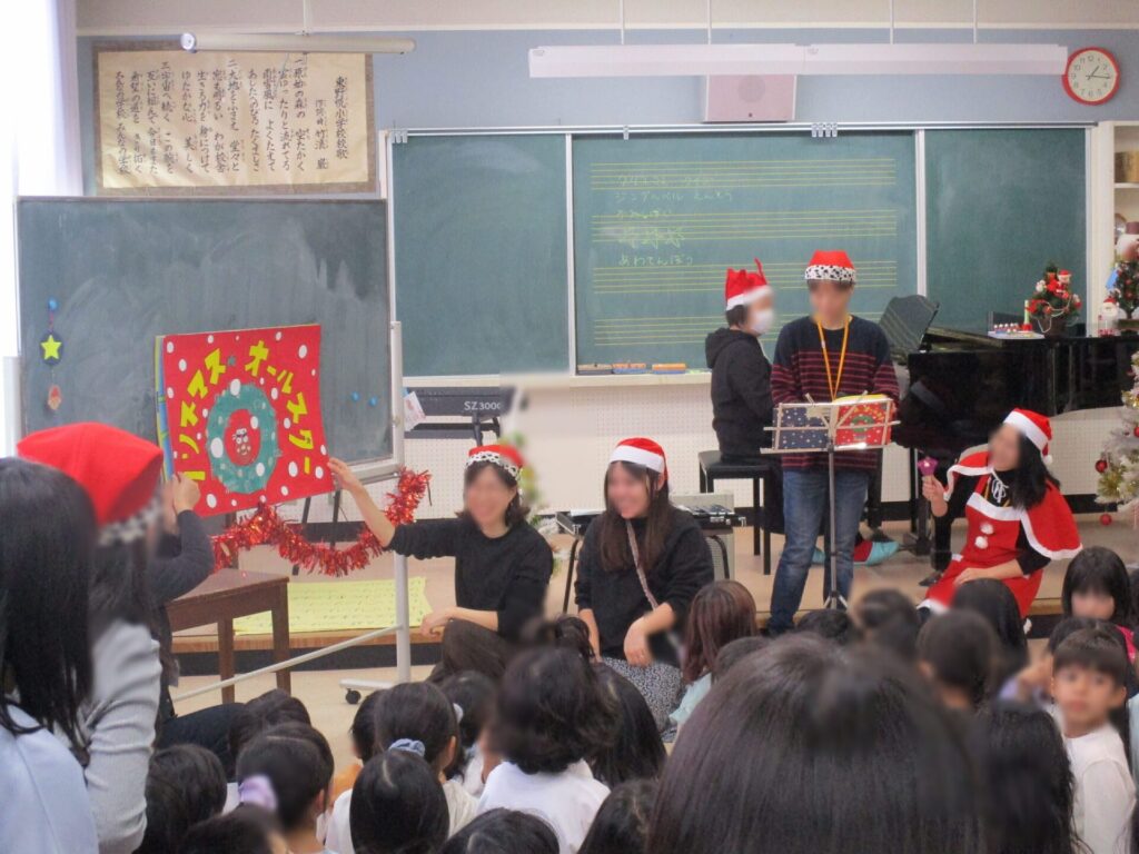 クリスマスが近づく中、つくし学級による「クリスマス会」とPTAよみっきーさんによる「読み聞かせクリスマス会」が行われました!つくし学級では、校長先生がサンタさんに扮して、プレゼントが配られました!PTAよみっきーさんでは、読み聞かせだけではなく、ハンドベルによる演奏もありました!どちらも子どもたちは、とても喜んでいました!