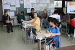 授業では、自己紹介から始まり、リズム遊びや和太鼓の歴史についてのお話を聞いたあと、実際に太鼓を打つ体験をしました。
