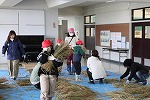昼食後は、「稲架(はさ)掛け」して乾燥させていた稲束を全校児童で脱穀しました。昔ながらの農作業を体験することで、食の大切さや農家の方々の苦労を実感することができました。