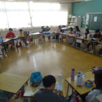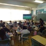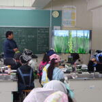 本日(11/21)、地元の農家の方を講師にお招きし、お米の生産についてお話を聞きました。その中で、衛星データを使った自動運転やドローンを活用した農作業のことも教えていただきました。お話の後、提供いただいた【ゆめぴりか】を文化鍋で炊き、自分でおにぎりにしておいしくいただきました。今回は、お米のほかに収穫したばかりのキャベツ(バスケットボールほどの大きさで、子どもたちは驚いていました)も持ってきていただきました。新鮮で甘くて美味しいキャベツも食べ、江別の味を堪能しました。