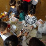 12月1日(月)は、食育弁当の日となっています。この日は、給食がなくお弁当を持ってきます。児童は、おうちの人とお弁当の食材を買いに行ったりお弁当を詰めたり、自分ができることに取り組んでこの日を迎えます。学校では、お弁当箱におにぎりやおかずの模型を詰める体験をしました。