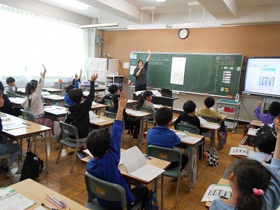 授業の様子を覗いてみると、先生の問いかけに対して元気よく手を挙げて発言する姿がたくさん見られました。自分の考えを自分の言葉でしっかり伝えようとする姿勢が大変立派です。また、ペアやグループでの活動では、友達の意見にしっかりと耳を傾け、「なるほど!」「私はこう思うよ」と教え合いながら「共に学ぶ姿」が教室のあちこちで見られます。