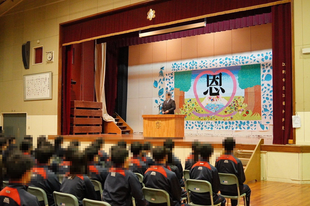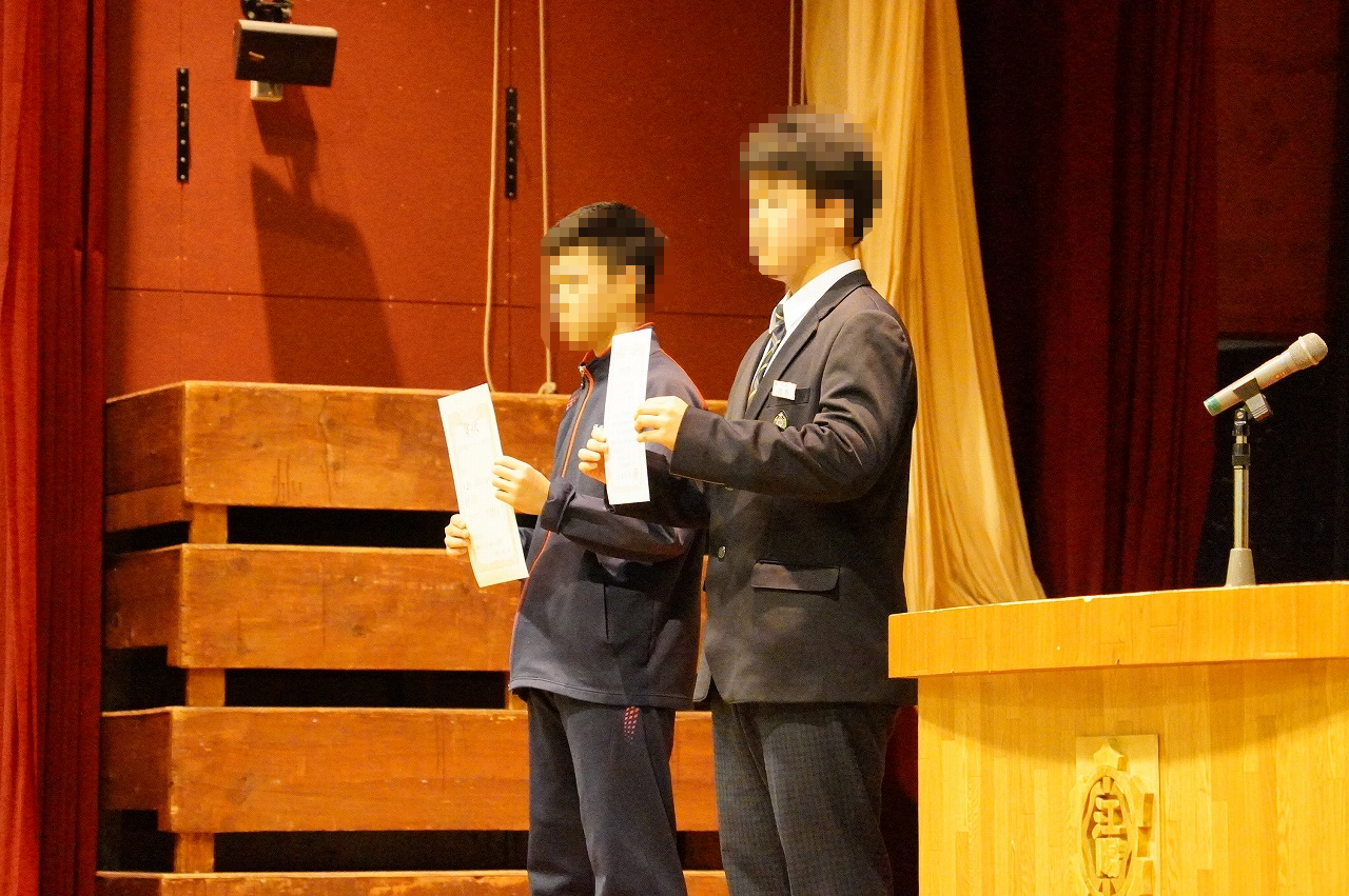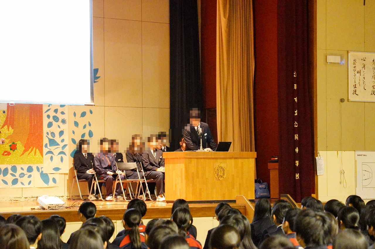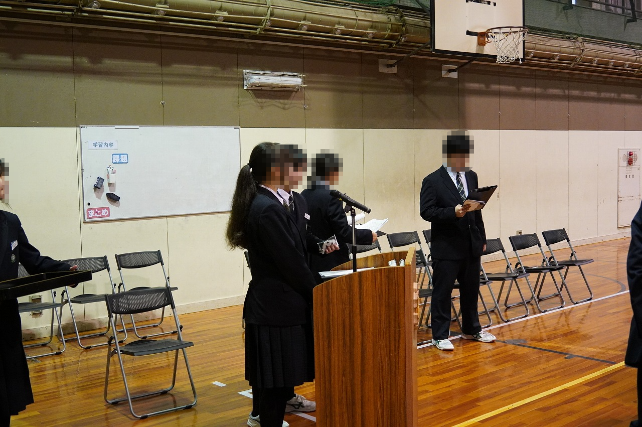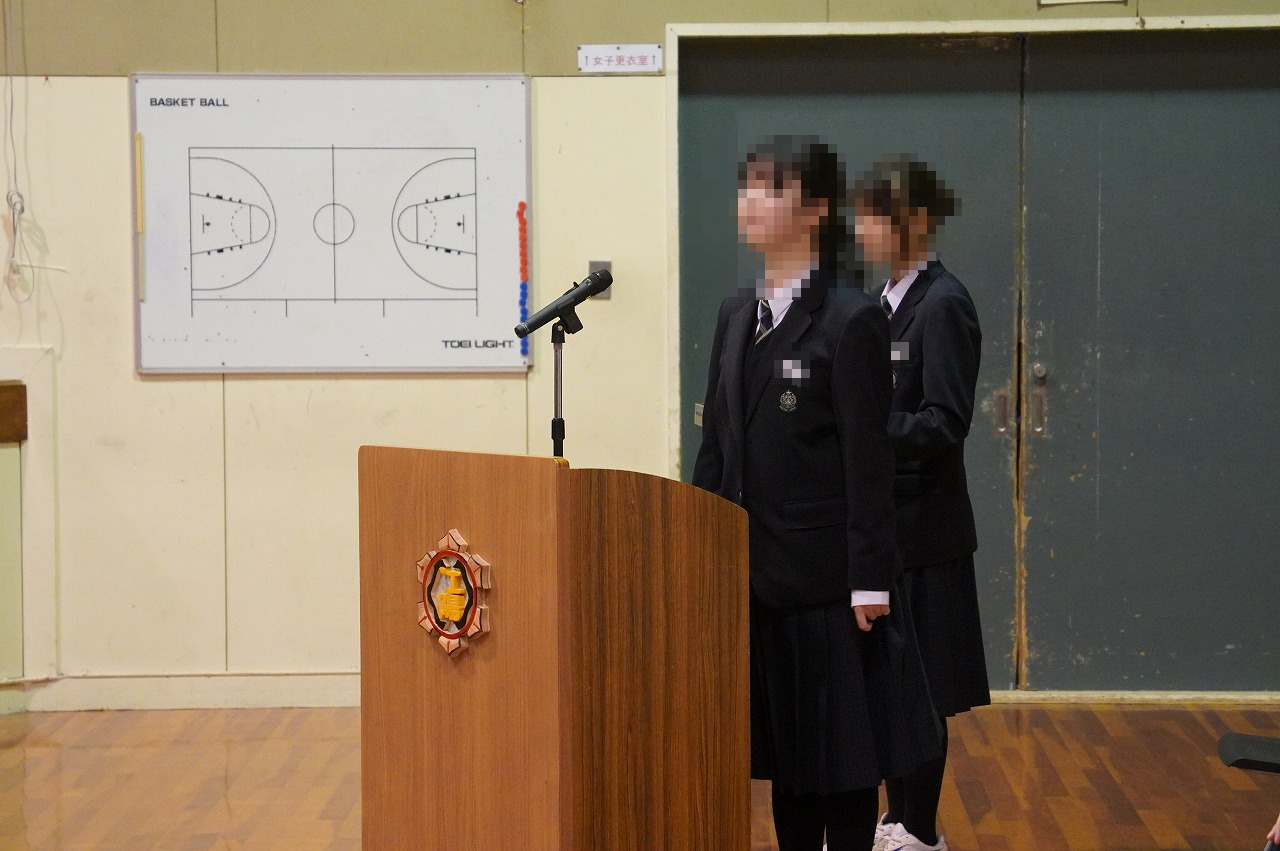 12月25日(木)、新生徒会の企画・進行による生徒会集会が行われました。後期前半の委員会活動の振り返りや、冬休みの生活の仕方、いじめ撲滅集会など、スライドを工夫して各委員長から発表がありました。冬休みは3週間と、夏休みよりも短いですが、充実した休みになるとよいですね。