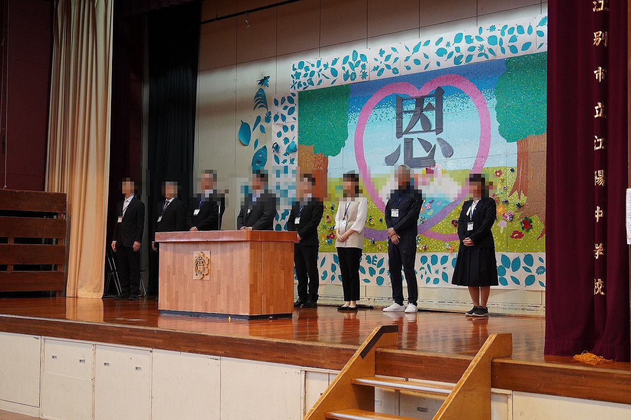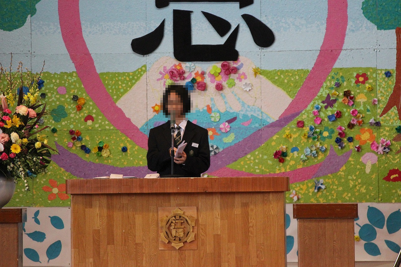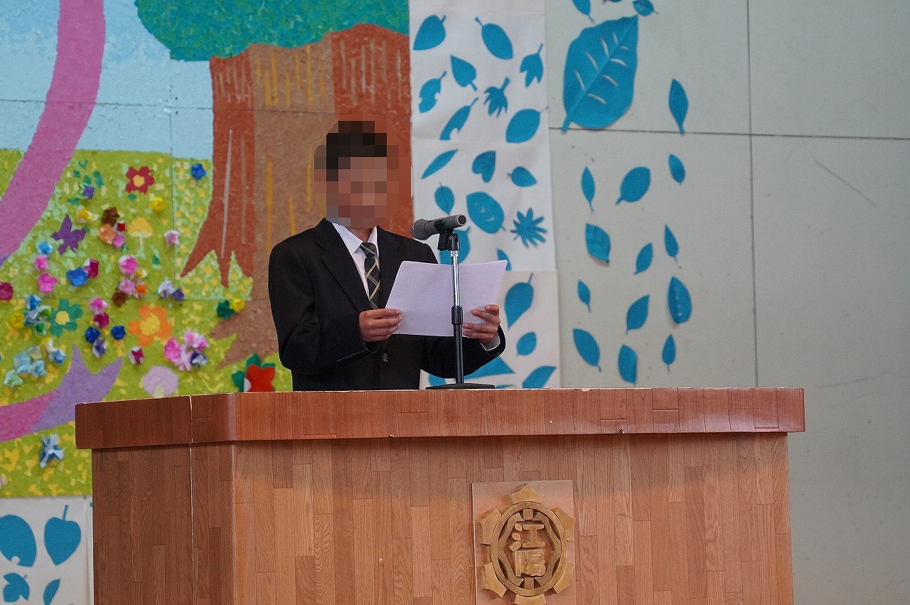 今回は、江陽中学校を牽引してくれた各委員会の委員長をはじめとする生徒会役員たちからの活動報告と反省などが発表されました。これまでの活動の成果や課題、そして次年度へ向けたメッセージが語られ、全校生徒も真剣な眼差しで耳を傾けていました。