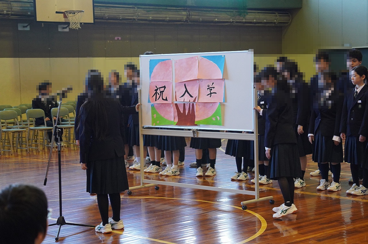 4月8日、新入生を迎えての最初の生徒会行事、新入生オリエンテーションが行われました。1年生に中学校の決まりや委員会の役割などが説明されたほか、各部から実技を伴う活動紹介がありました。1年生の代表生徒のお礼の言葉も立派でした。これからの見学期間で、何部に入るか決めていきます。