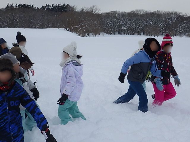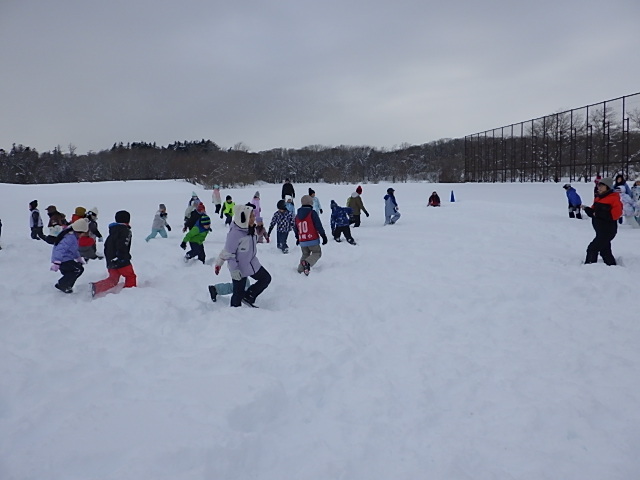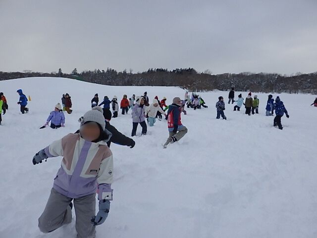 この雪深いグランドに大人数が集まる、かなり攻めた企画です。始まる前から私も何だかワクワクでした。子どもたちもテンションマックスで、文字通り「ワーキャー」と元気な声がいっぱいでした。