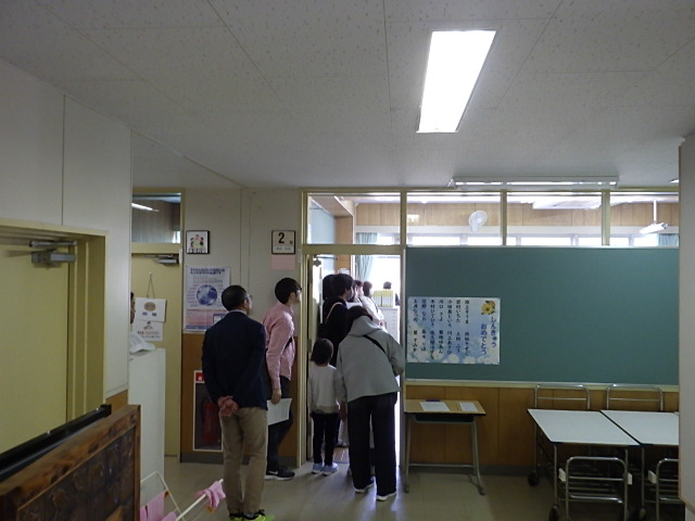 着任式、始業式を終え、たくさんのプリント、教科書を受け取り、2~6年生が下校したあとは、休む間もなく入学式でした。