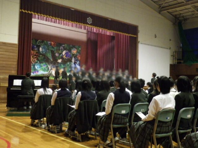 さすが中学生。1年生といえども声量もあり体育館に響き渡っていました。本当は、2、3年生の合唱も聞きたかったのですが、後ろ髪を引かれる思いで、行事、野小ランがあるため、学校に戻りました。