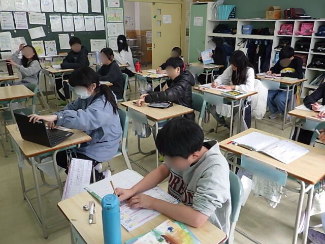 6年 3時間目開始3分前 静かに座って待っています。普通のことが、普通にできるのは、実はすごいことです。当たり前と言えば、それまでですが、私は、立派な6年生だと思います。