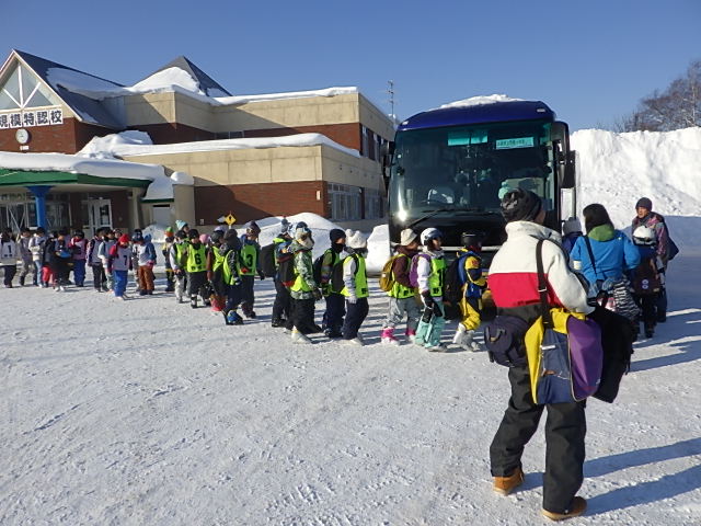 スキー学習出発! 2026年2月4日 nopporo-es コメントする 9:00長沼スキー場へ向けて、バスが出発しました。先日は、吹雪による、臨休、スキー学習延期となりましたが、今日は、うって変わって快晴です。 ウキウキワクワク いざ、しゅっぱーつ! 学校に残った1年生は、いつもどおり元気に勉強をがんばりました。