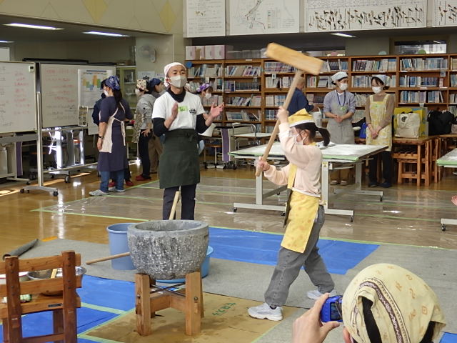 11月29日(土)、土曜授業にて餅つきを実施しました。①1・6年 ②2・5年 ③3・4年と3回に分け、行いました。