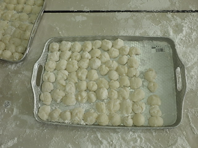 熱々のお餅でやけどしないように気を付け、丸めました。