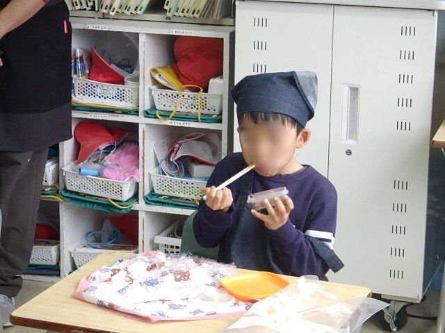 きな粉、砂糖醤油、黒蜜など思い思いのトッピングを持ち寄り、食べました。「家の人と食べたいから、私はもちかえるの。」と教えてくれた子もいました。