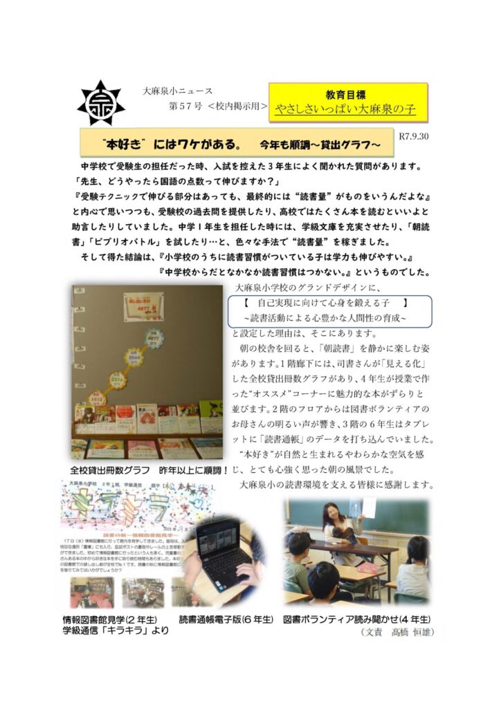 令和7年度 全国学力・学習状況調査結果のお知らせ