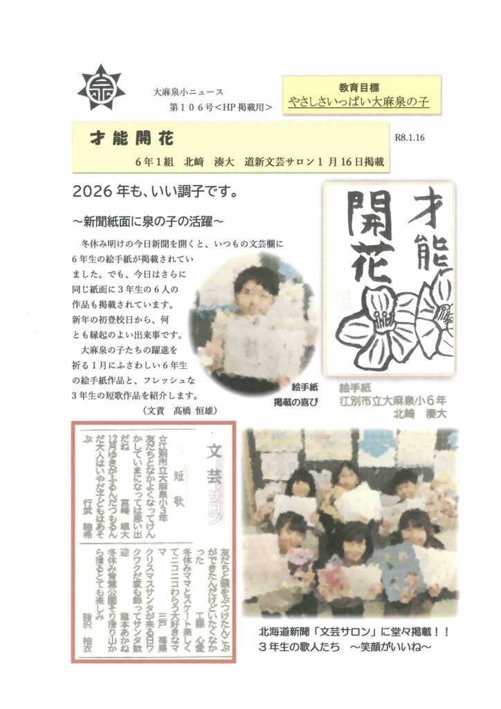 大麻泉小ニュース第106号をお届けします。