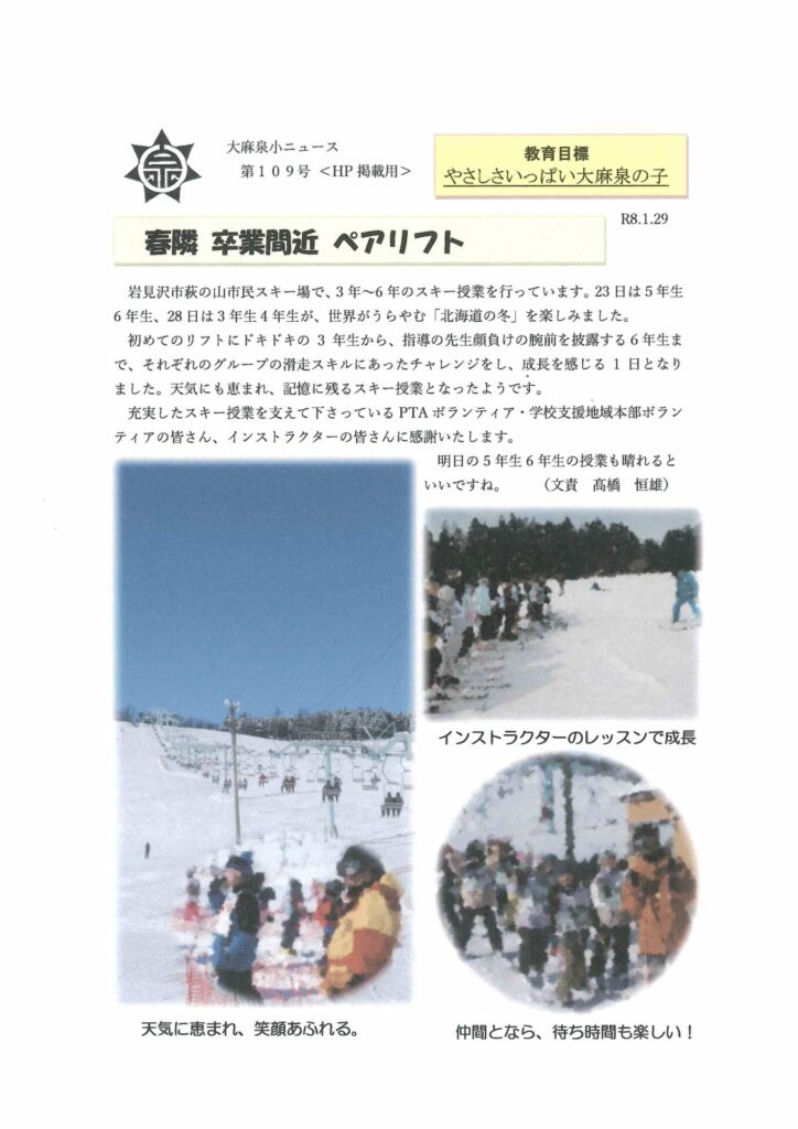 大麻泉小ニュース第109号をお届けします。
