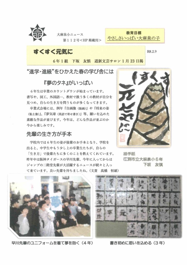 大麻泉小ニュース第112号をお届けします。