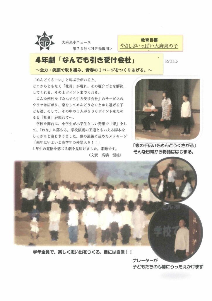 大麻泉小ニュース第73号をお届けします。