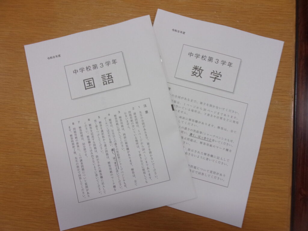 20日実施した英語(読むこと・書くこと・聞くこと)に続き、本日は国語・数学を実施しました。1時間目の国語、2時間目は数学に真剣に取り組む様子が見られました。最後まであきらめず粘り強く取り組む姿が素晴らしいです。5月11日には、英語(話すこと)があります。