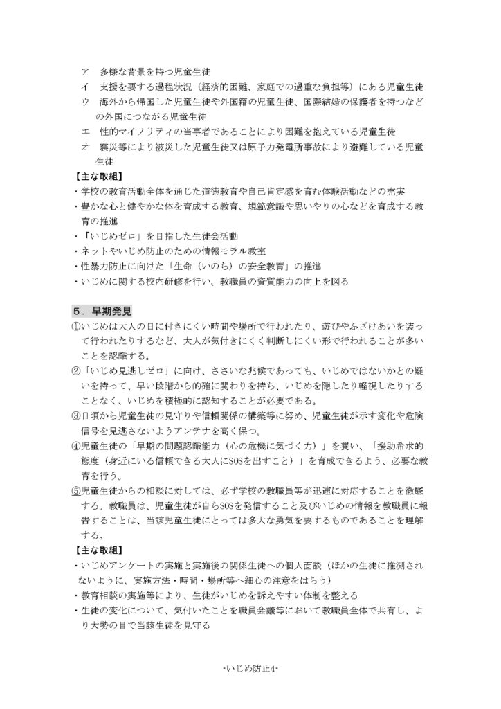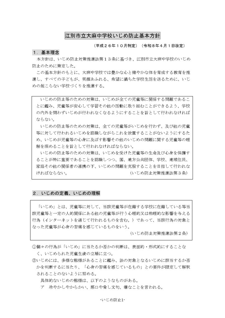 本校でのいじめ防止にかかわる基本方針を、令和7年4月に改訂しましたので改めて掲載いたします。
