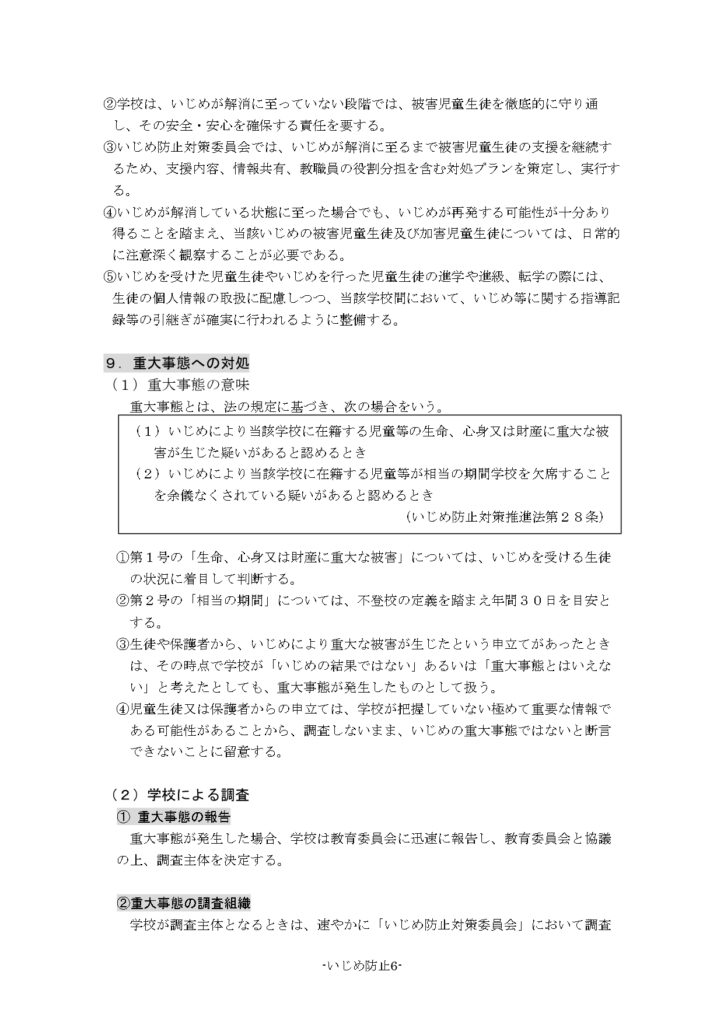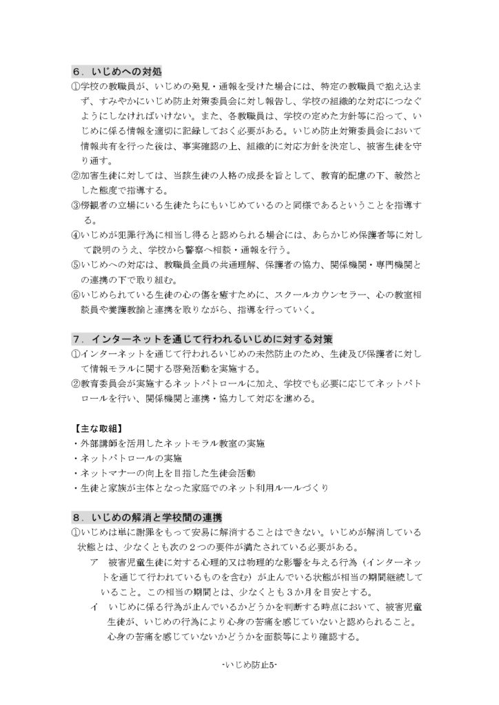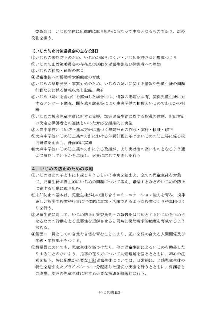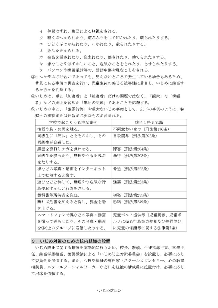 いじめ防止について
