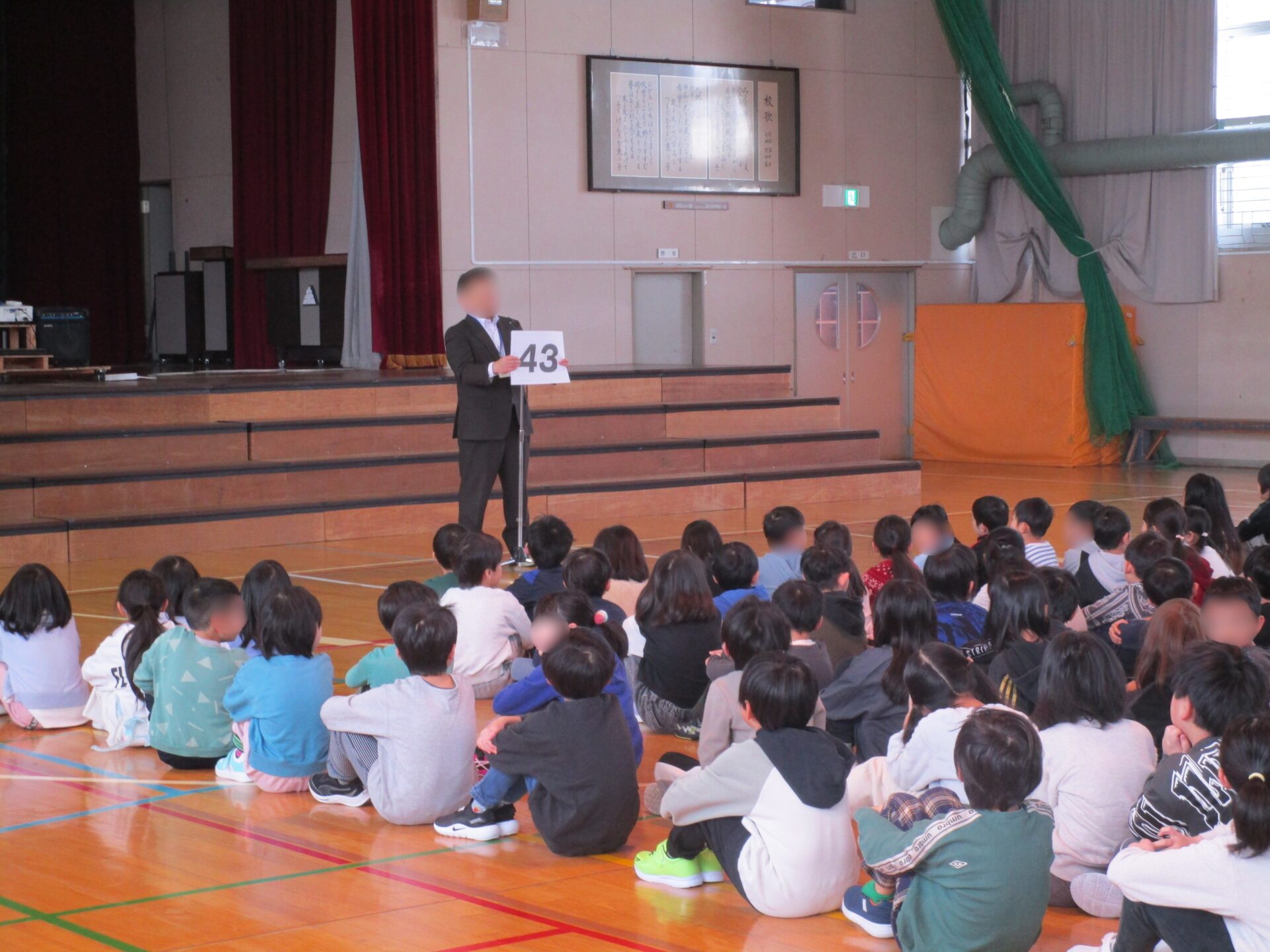 全校朝会では、校長先生からは3学期はとても短く1~3年生は44日、4・5年生は45日、そして、卒業を迎える6年生は43日しか登校日がないこと、1日1日を大切に、1年間のまとめである後期後半を元気に過ごしてほしいというお話がありました。
