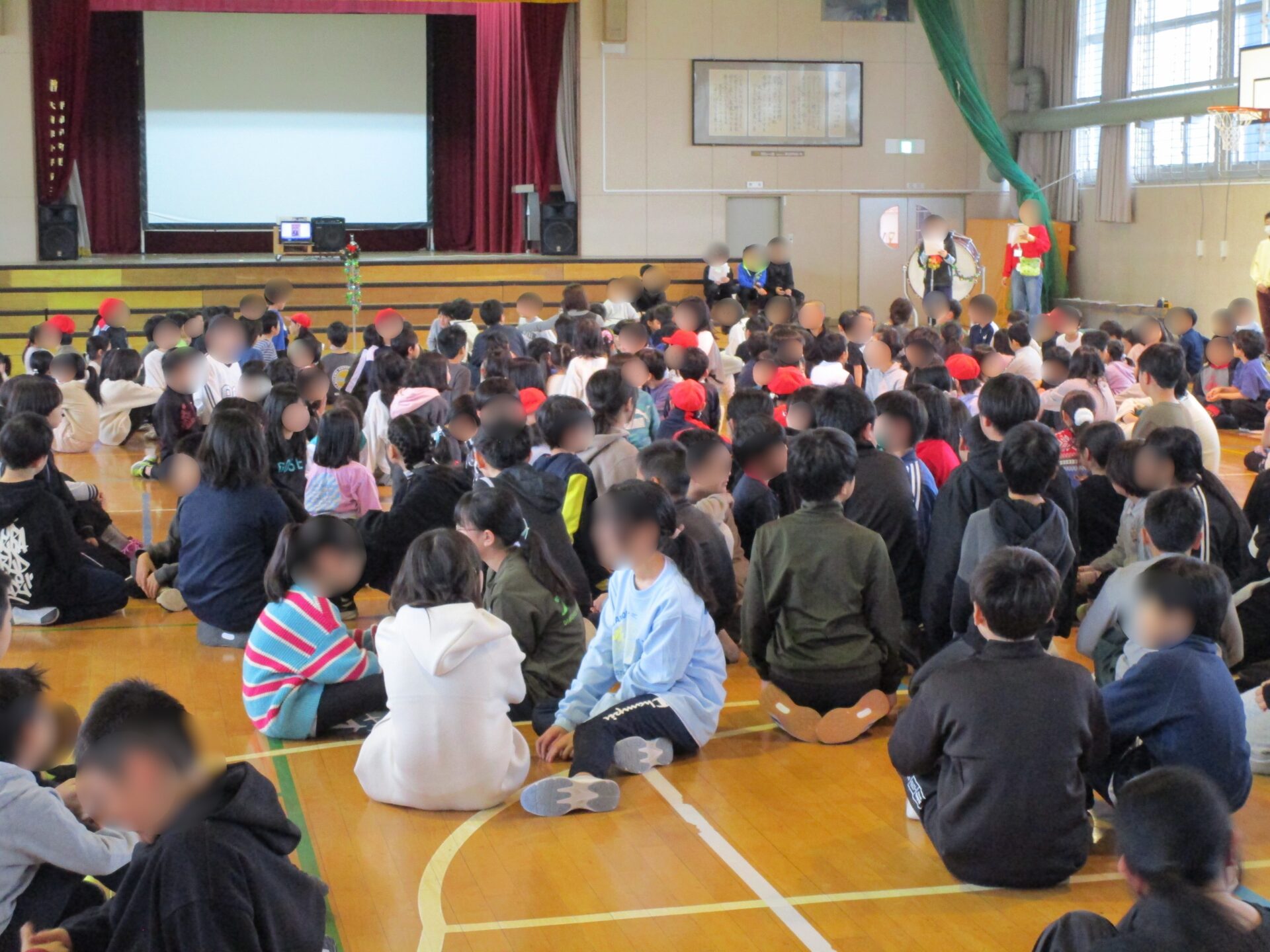 12月25日(木)は1時間目に全校児童で集まり、「なかよし集会」を行いました。
