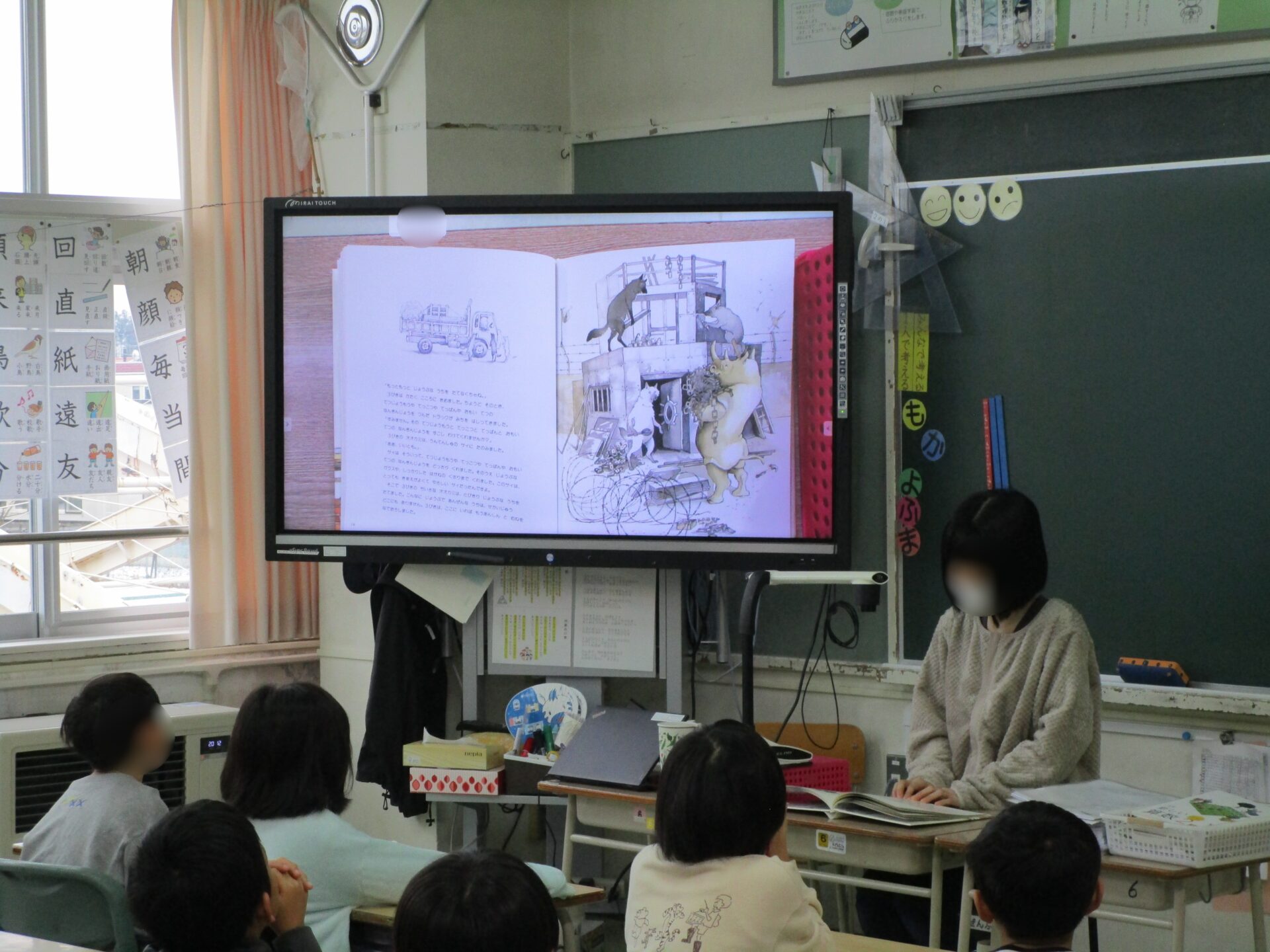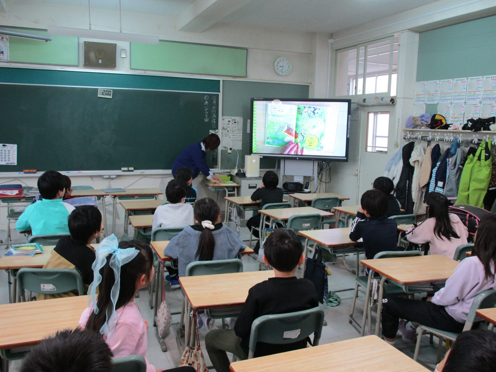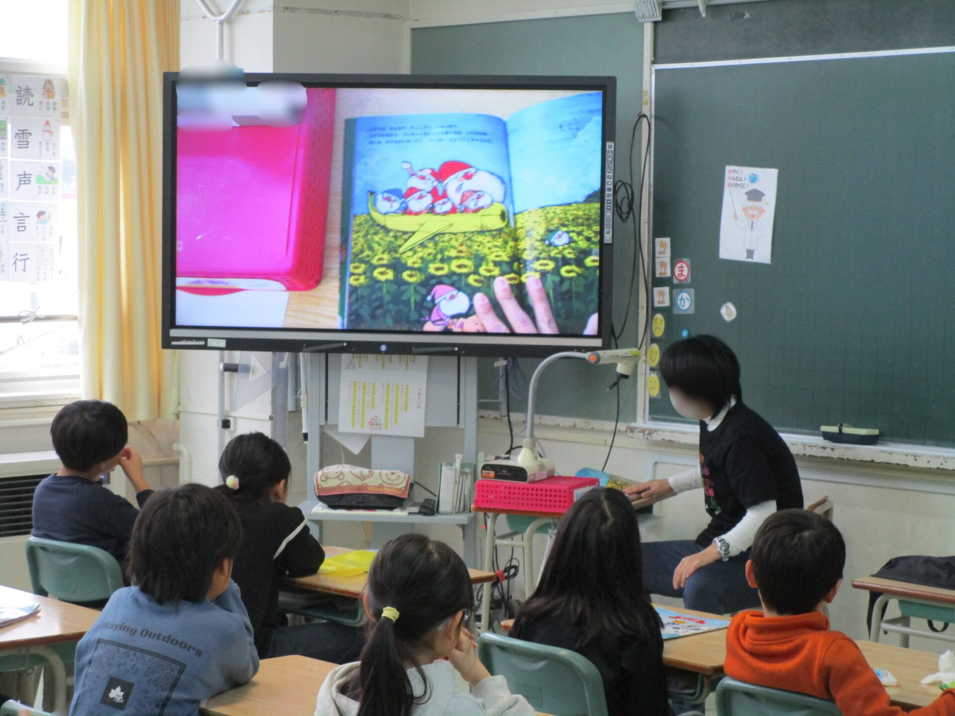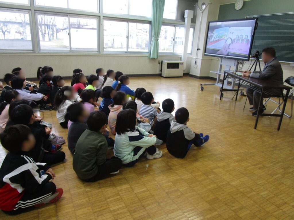 年に1度の大イベントで、各クラスに担任以外の先生が訪問しておすすめの本を読んでくれるというスペシャルな時間でした。どの教室も子どもたちが集中してお話に聞き入る姿が印象的でした。