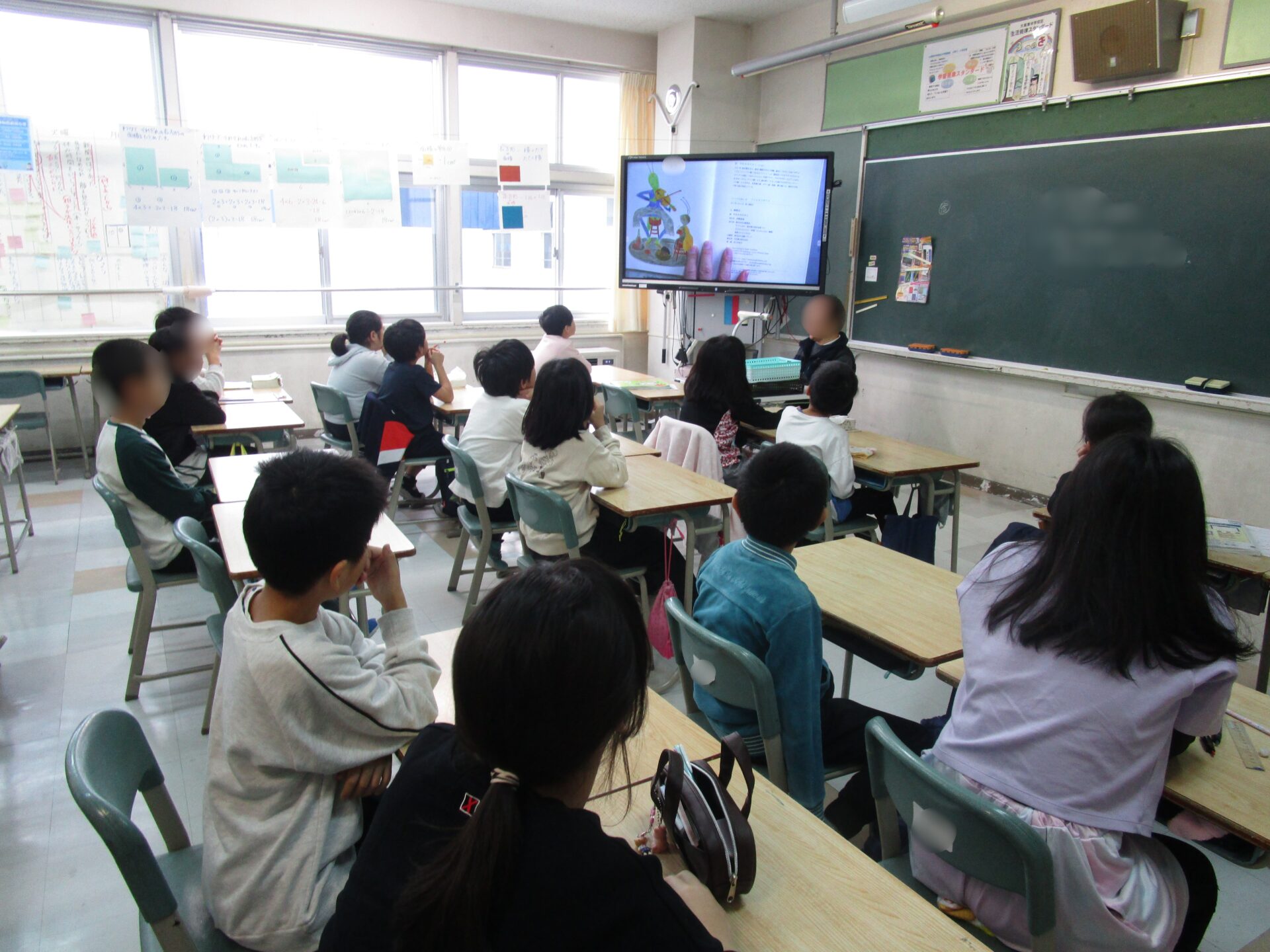 年に1度の大イベントで、各クラスに担任以外の先生が訪問しておすすめの本を読んでくれるというスペシャルな時間でした。どの教室も子どもたちが集中してお話に聞き入る姿が印象的でした。