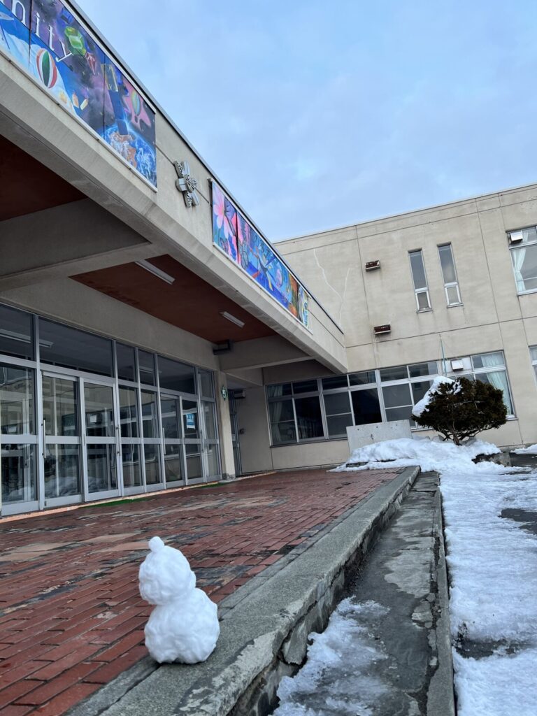 【今日の一枚】今日は日差しが強くて暖かく、過ごしやすい1日でした。生徒玄関を見ると可愛い雪だるまがありましたので、ついシャッターを切ってしまいました。