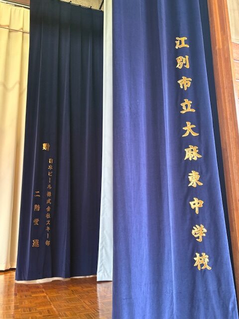 本校卒業生でスキージャンプ競技の二階堂蓮選手、二階堂選手が所属する日本ビール株式会社様から、ミラノ・コルティナ冬季オリンピック出場記念及び3年間学校生活を送った本校への感謝の意として、体育館ステージ幕が寄贈されました。4/7(火)の始業式、入学式で生徒、保護者、地域の方に披露しました。